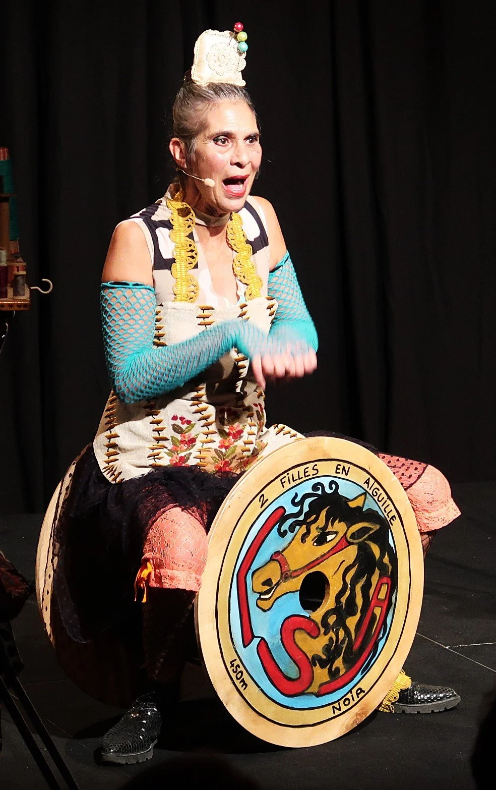 Les soeurs Antienne, deux comédiennes et chanteuses a cappella ont réalisé une performance sur la scène de l’espace Bernard Meulien. En revisitant un répertoire de chansons à textes sur le thème de la mode, de la couture et du recyclage, les “2 filles en aiguille” ont tissé un spectacle de cabaret original, parfois nostalgique et souvent amusant.