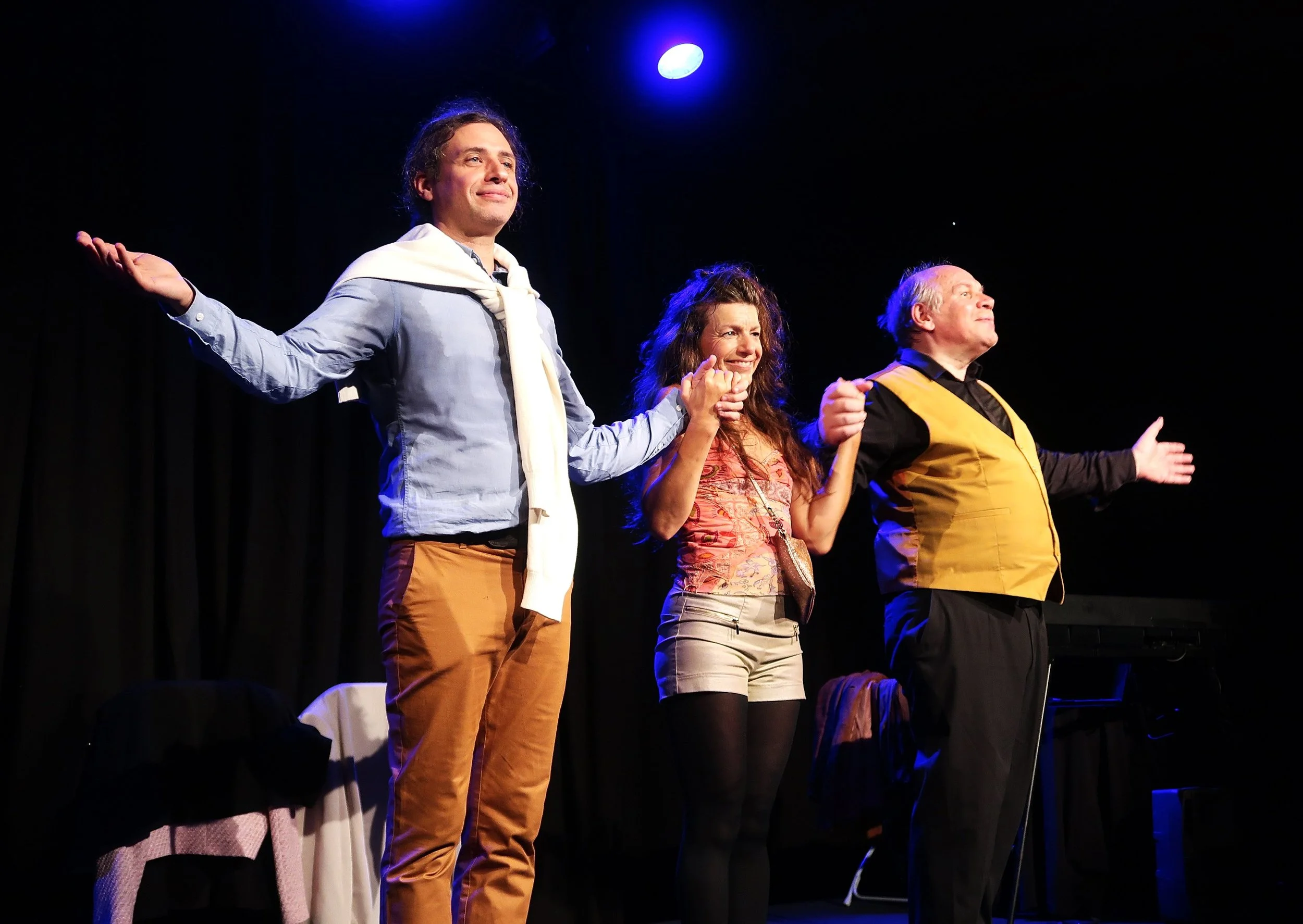 Encore une belle soirée avec un public réjoui par une comédie style “café - théâtre” aux dialogues et aux couteaux aiguisés. 3 comédiens inspirés par une histoire d’adultère hilarante entre prises de bec et coups de sang. Dans la salle bien remplie, les rires éclatent en réaction aux quiproquos et aux jeux de mots. A la fin du spectacle, c’est le pot de l’amitié qui permet de discuter avec les acteurs et de recueillir des avis de spectateurs :