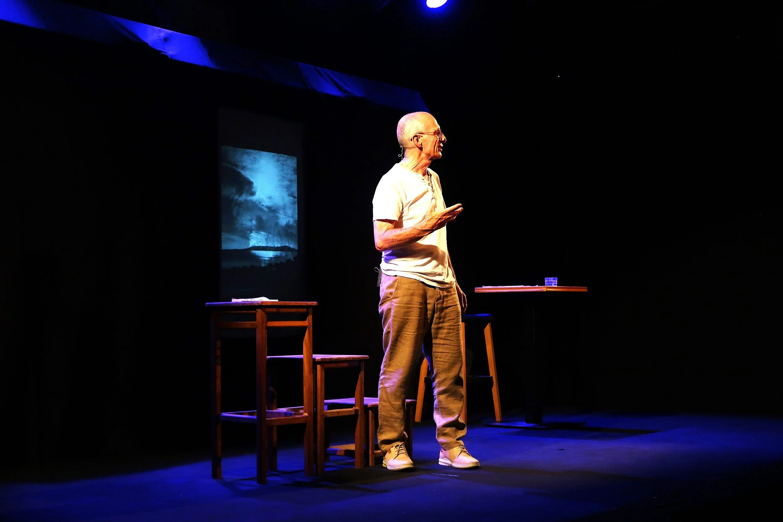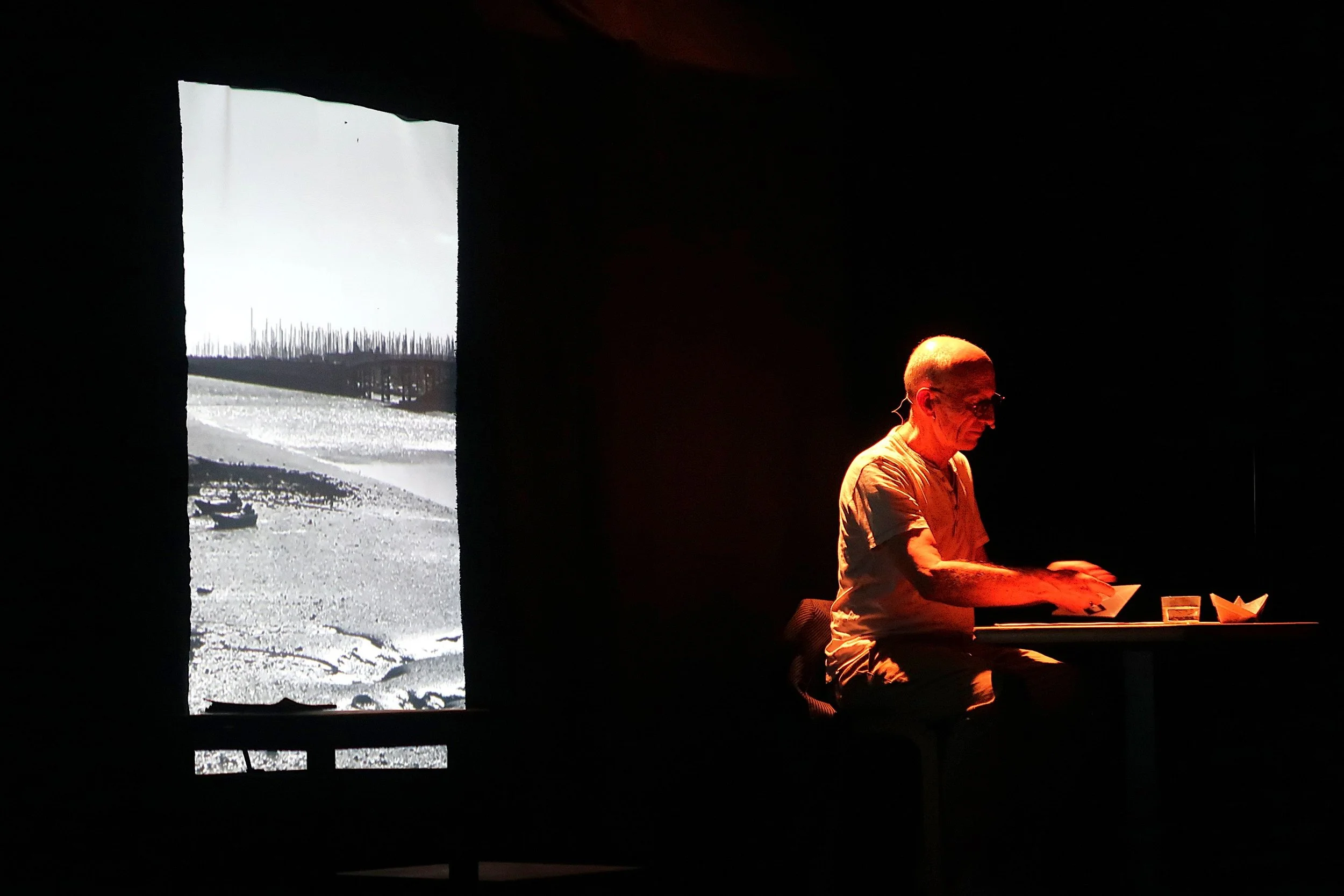 Malgré le temps orageux qui menaçait, les nuages sombres ont épargné la scène du Petit Théâtre des Amandiers pour permettre à Paul Fructus de transmettre à un public profondément ému les mots lumineux de Jean Giono. La beauté de la langue, l’interprétation magistrale et le décor minimaliste étaient réunis pour augmenter la puissance d’un propos sensible et pacifiste sur le thème, ô combien d’actualité, de “La guerre, la marche du monde”. Seul en scène, Paul Fructus a érigé la langue de Giono en acte de résistance à la barbarie humaine. Public touché !